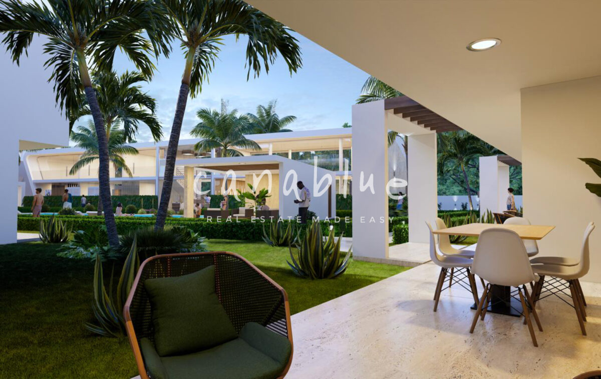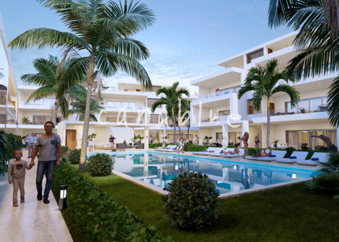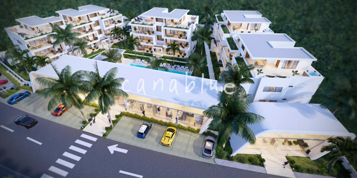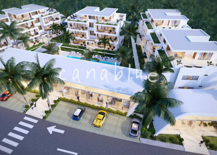 El proyecto cuenta con 36 apartamentos distribuidos en 5 edificios, con unidades de 1, 2 y 3 dormitorios, incluyendo áticos. Además, integra un área comercial de 300 m² con usos flexibles como restaurante, recepción, espacio de coworking u otros espacios empresariales, lo que garantiza un estilo de vida completo y cómodo para residentes y huéspedes.