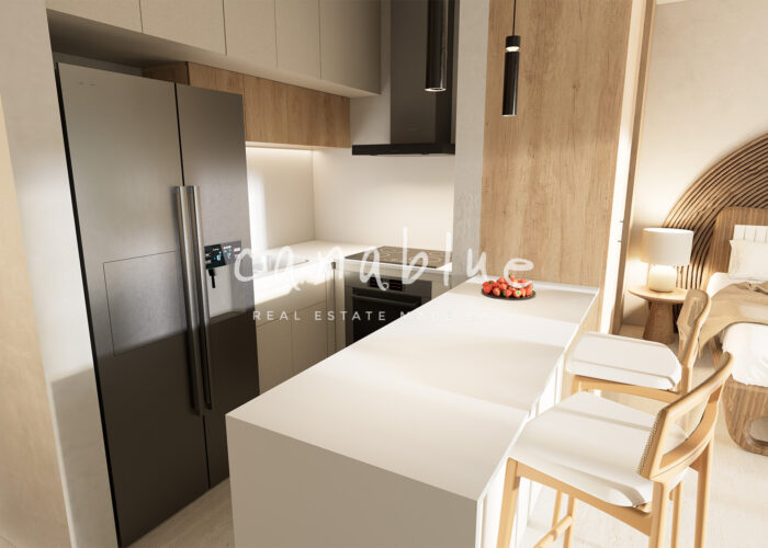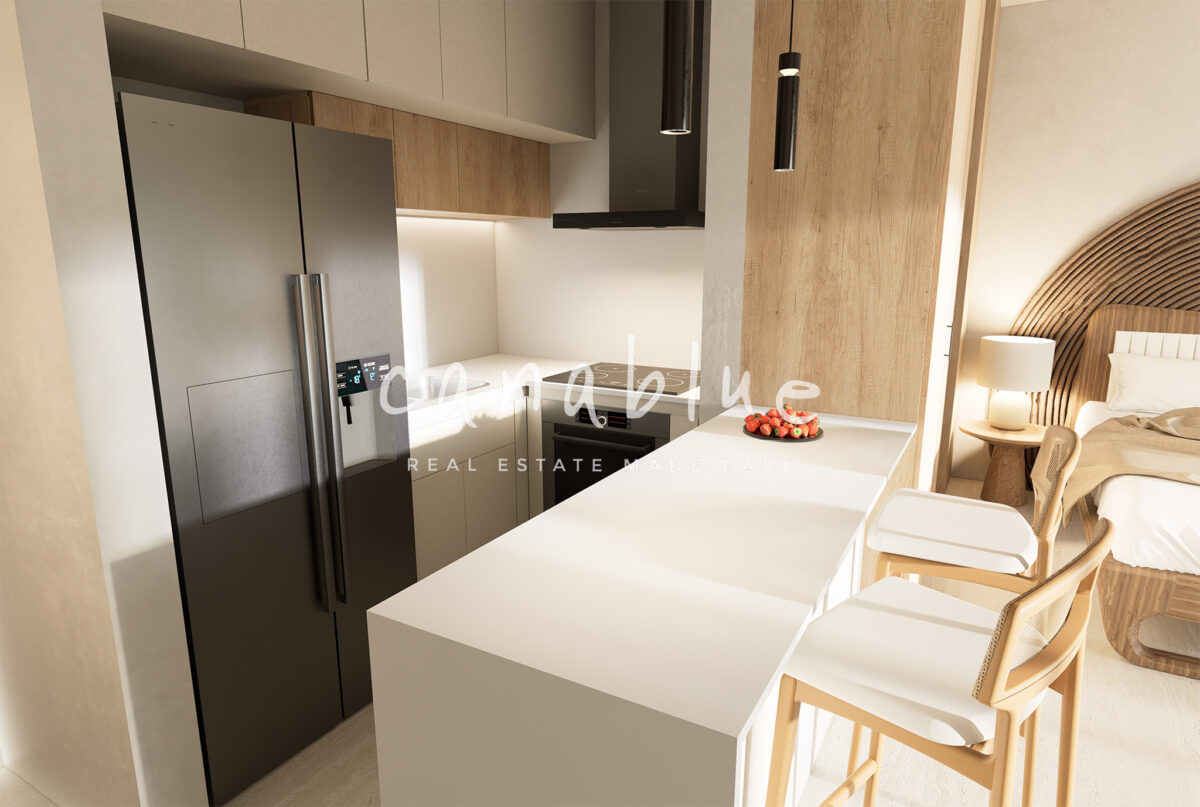 – Distribución abierta de sala de estar y cocina